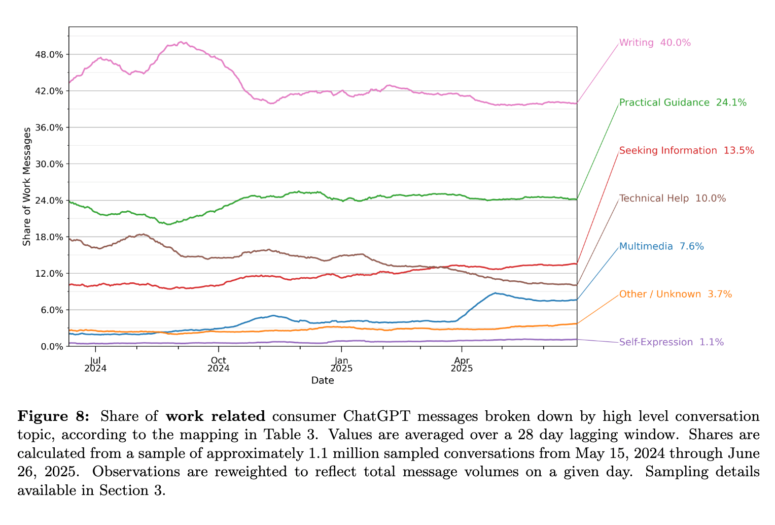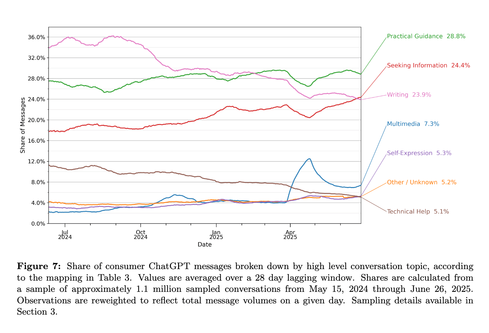 Practical guidance is outpacing writing as the main consumer use for ChatGPT.
